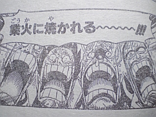 エースの処刑があと29時間まで迫っていた・・・ 海軍兵士:「新世界にて゛赤髪゛が少々小競り合いを起こしたようで」 モモンガ:「なぜ今・・・相手は誰だ・・・!!!」 海軍兵士:「「四皇」の゛カイドウ゛です・・・!!!」 「この期に゛白ひげ゛を討ち取ろうという゛カイドウ゛を゛赤髪゛が止めたのではという本部の見解で・・・皆冷や汗を流しました・・・!!」 一方インペルダウンレベル3~吹き抜けの塔~ 行かねぇよと言うバギーとMr.3 と言いつつも足場が崩れおちる四人・・・ 一方レベル4~血の池~ 囚人:「おい やめてくれ・・・・!死んじまうよ!!!」 謎:「どうなろうともそれが報い」「やれ」謎の獄卒獣ッポイのが武器でぶっ飛ばす なんとその下はマグマだった・・・ 囚人:「助けげて・・・!」 その言葉を聞いて囚人が逃げる 囚人:「このフロア死ぬより苦しい・・・もういやだ!!!」 調子こいてる囚人「道を開けろぉ!!!」 調子こいてる囚人:「おい どけ火の海に叩き込まれてぇのか!?」 調子こいてる囚人が男を殴る・・・ メキッ!! 調子こいてる囚人がヅツキをくらう そこに居たのはなんとMr.1だった!!! 一方~レベル4レベル3との連絡通路前~ 獄卒獣三人・・・匹かな? ・獄卒獣ミノリノケロス(内気) ・獄卒獣ミノコアラ(武闘派) ・獄卒獣ミノゼブラ(人見知り) ルフィがレベル4にいることを知ったマゼラン・・・ マゼラン:「3隊に分かれることにする」 レベル3への階段をハンニャバル レベル5への階段をサディ率いる獄卒獣3人・・・匹 残る獄卒共全員はルフィ達をおう・・・ 一方~血の池付近~ ルフィがにおいに気付き走る・・・ ルフィが進んだ場所は調理場だった・・・ ボンクレが追いかける・・・ バギーは追いかけようとするがMr.3に捕まる・・・ ルフィが走っていると獄卒のザコに会う・・・ ゴムゴムの花火でぶっ飛ぶザコ・・・ 一方 Mr.3はやばいことに気付いていた・・・ Mr.3:「この騒動を打ち止めにする為このフロアにインペルダウンの゛オールスター゛が揃っている可能性がたかい・・・!」 「・・・の・・・残り3人の獄卒獣は勿論・・・!監獄署長゛マゼラン゛まで出て来たらもう・・・終わりダガネ!!!」 一方ルフィ達・・・ ベチャッ 何かが落ちる ボンクレ:「麦ちゃん!!!上~~~っ!!!」 ドフゥン!! 降りてくるマゼラン ボンクレ:「マ・・・マゼラン~~~!!!!」 ルフィ:「誰だ!?」 マゼラン:「ネズミ共ォ~~~・・・!!!」 内容終わり 感想 カイドウでてくるかもね!! あとダス・ボーネスがどうからんで来るのか気になる・・・予想は仲間になりそう!!! 獄卒獣強そうだね・・・多分ミノコアラ一番強そう笹の葉とか飛ばしてきそう!! 二番がミノゼブラで3がミノリノケロス!! てかマゼラン絶対強いよ!!でも自然系ではなさそう多分超人系ドルドルの実的な感じ?? でも多分ルフィたちだけじゃオールスターは倒せないと思う・・・ てか次号ワンピース休載だって~~~~~残念^^ あとワンピースの新しい映画で空飛ぶ海賊金獅子がでるそうです名前は”シキ”らしいよ^^うそかほんとかわからんけど^^ PR |