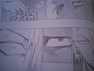 大和は二年前NASA中と試合をしていた! その時見ていたパンサーがウズウズしはじめた。 そして次の瞬間大和の方向に走り出した!! 一瞬にして大和は目を奪われたその息をのむほど美しい黒人のバネに・・・ そのまま大和を通りすぎた・・ アポロ:「誰か捕まえろ!そのバカを・・」 大和は追いかけたが追い付けない・・・ それをテレビで見ていたMr.ドン・・ Mr.ドン:「母校ノートルダム付属も地に落ちたものだな」「誰だか知れんがこの凡夫は頂点の名「アイシールド21」を汚している・・」「力鳴き人種が己の鼓舞のために偽りの頂点を名乗る」「哀しいことだ・・・」「引導を渡してやろうじゃないか」 その後大和は言いがかりのような罪を着せられてノートルダム大付属を除名された・・ 大和を尾けていたヒルマ・・そこで懐かしい人と出会う 米軍基地にいたノリエガ達だ 昔米軍基地の人:「ポーカーあっちにすげぇのが来ててさ代わりにリベンジしてくれよヒル魔!お前なら勝てんだろ?」 相手はクリフォードだった!!! ヒル魔:「ケケケコーリャ面白ぇみっっちり観してもらうとすっかゲームのクセをよ」 ヒル魔は挑んだ! クリフォードvsヒル魔 大和:「今こそお前に見せてやる日本のアメリカンフットボールを・・・!」 クリフォードのところまであるきながらドンが言う・・・ Mr.ドン:「つまりこういうことかな勝負師日本の策が才能の差を覆す」「だが哀しいなぁ~凡夫に囲まれた勝負師と最強に囲まれた勝負師同じハッタリならばどちらが脅威かね?」「そう勝負師の頂点もやはり頂点の中にいる・・・!」 ポーカーをはじめるヒル魔とノリエガ達とクリフォード・・ あっという間にヒル魔とクリフォードの一騎討ち・・・ ヒル魔はフルハウス・・・勝ちを確信したヒル魔、あとはクリフォードに大金をかけさせるだけ・・・ クリフォード:「俺のチップ全財産オールインだ」 ヒル魔:「ケケケ面白ぇ!」「乗・・・」 クリフォードの目をみてヒル魔の手が止まる・・・ ヒル魔:「いや・・・゛降り゛だ」 なんとクリフォードのカードはフルハウスより上のフォーカードだった!!! クリフォード:「結局ヒル魔のチップは奪えちゃいねぇよ」「配られたカードで勝ってても勝負所ではめなきゃ意味がねぇ」「年下の青二才にこんなにコケにされたのは」「生まれて初めてだ・・・!」 かっけええええよ二人とも^^ こりゃ来週が楽しみだ^^ そういえばペンタグラムの中でタタンカだけ力みしてねぇな来週かな?? 多分 バッドvsモン太 クリフォードvsヒル魔 ドンvsガオウ パンサーvsセナ タタンカvs大和か進 だな!!!